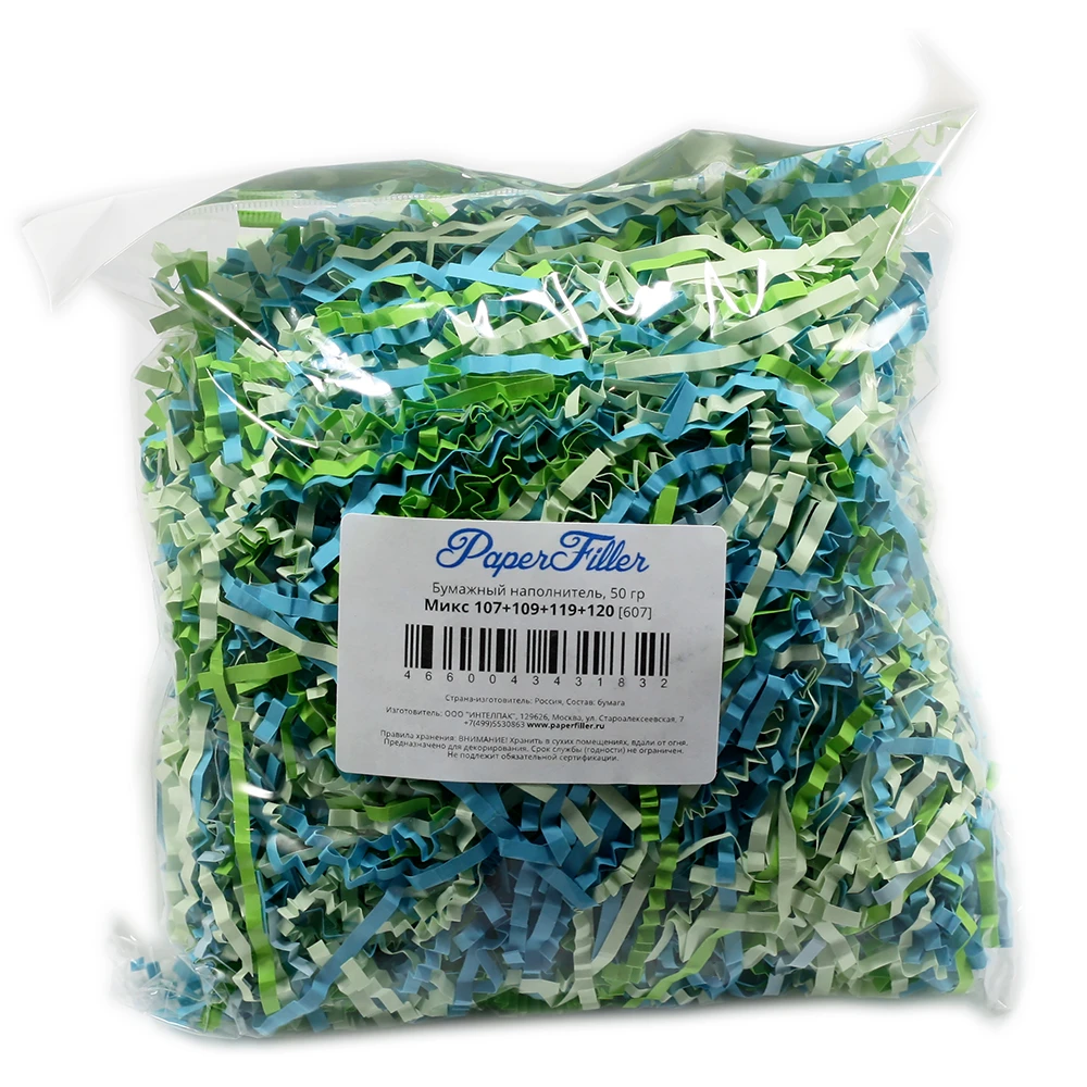 - Бумажный наполнитель Микс зеленый, синий, голубой, 50 гр Прочие упаковочные материалы